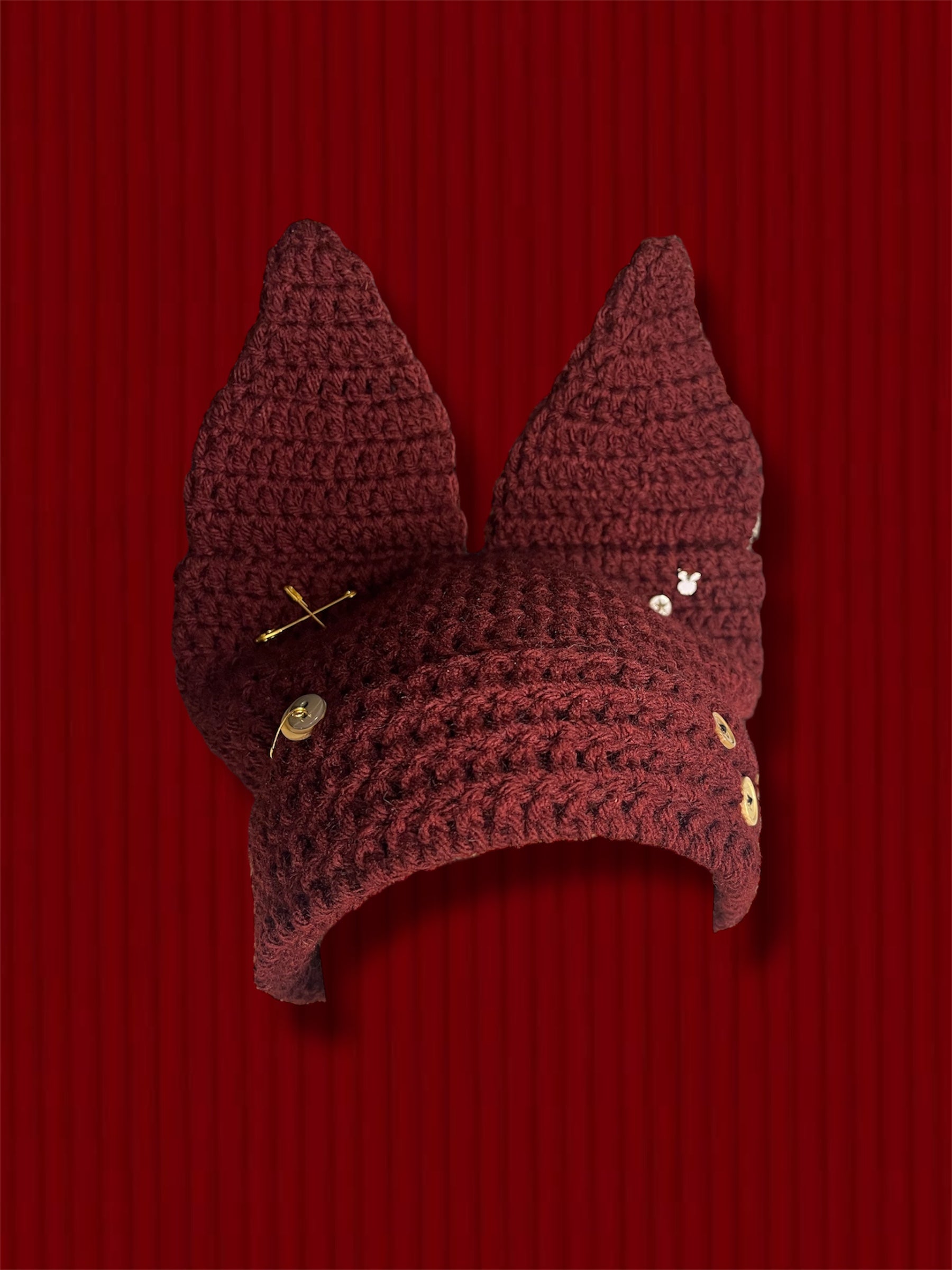 ⋆☕︎ ⋆✴︎˚。⋆ MAROON BUTTON-BABY BEANIE ⋆☕︎ ⋆✴︎˚。⋆